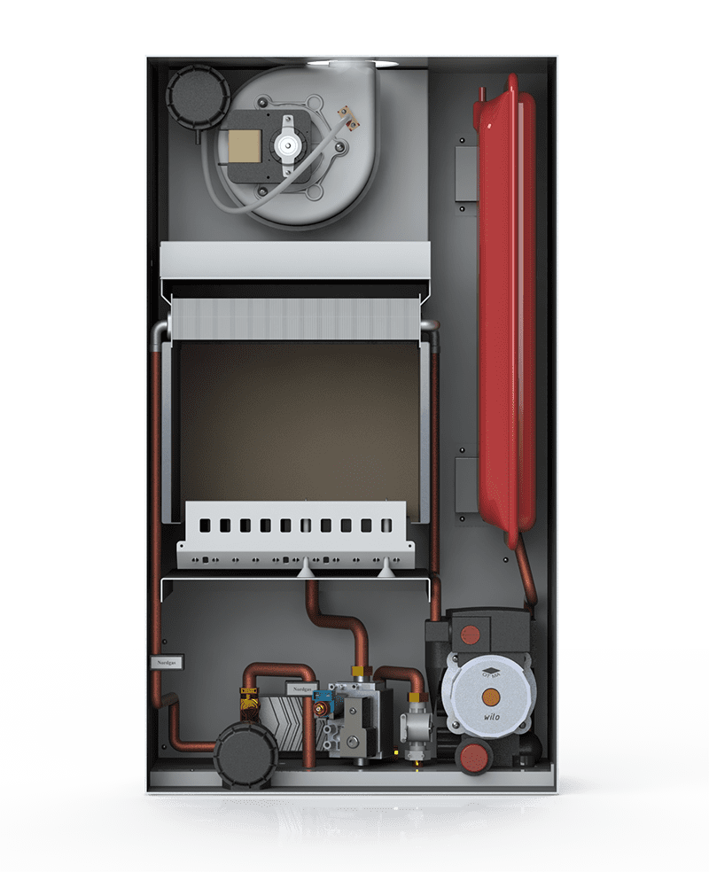 КПД выше на 10-15% за счёт использования энергии, выделяющуюся при конденсации пара. Мощность на выбор - 24кВт или 35кВт. Хватит для отапливания помещения от 240 до 350 м². Встроенная погодазависимая автоматика. Гарантия 2 года.